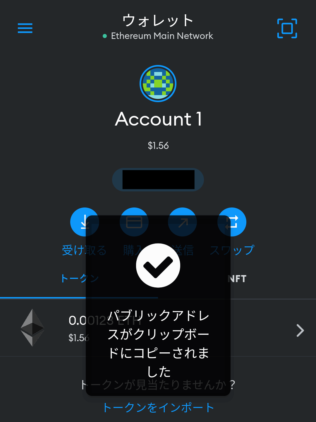 これでメタマスクのイーサリアムアドレスのコピーが完了しました。