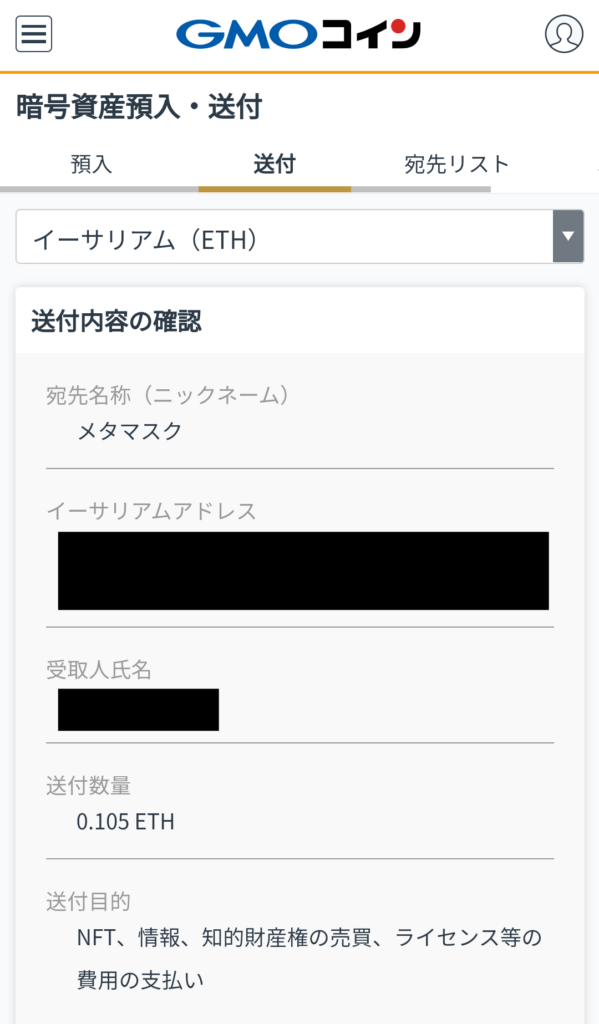 • STEP2: GMOコインからメタマスクにETHを送金する