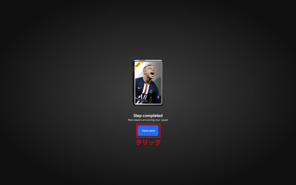 パックを開封して無料のカード(売却不可)を受け取ります。