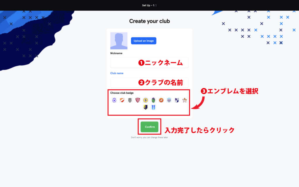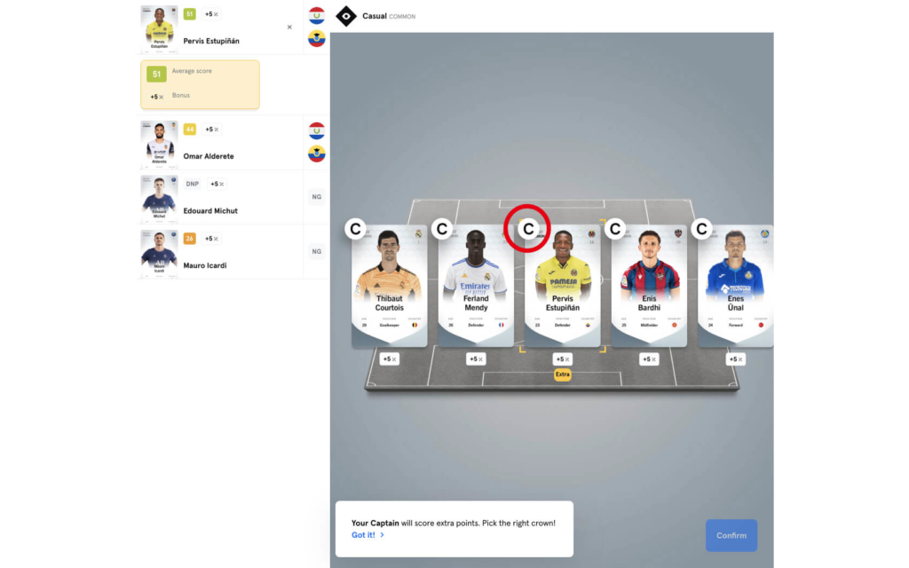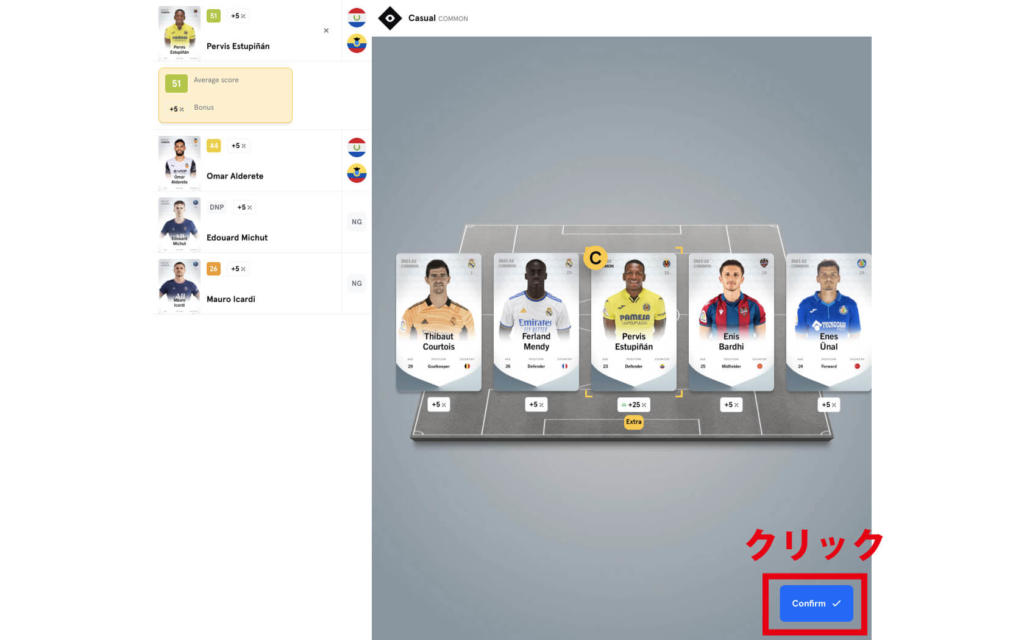 キャプテンを選出し終わったら「Confirm」をクリック。
