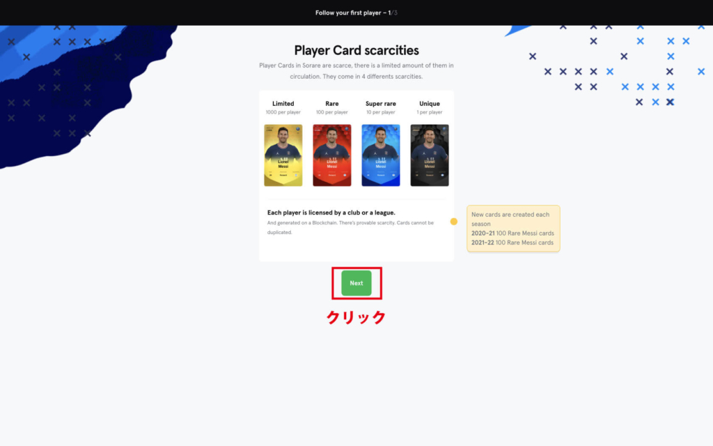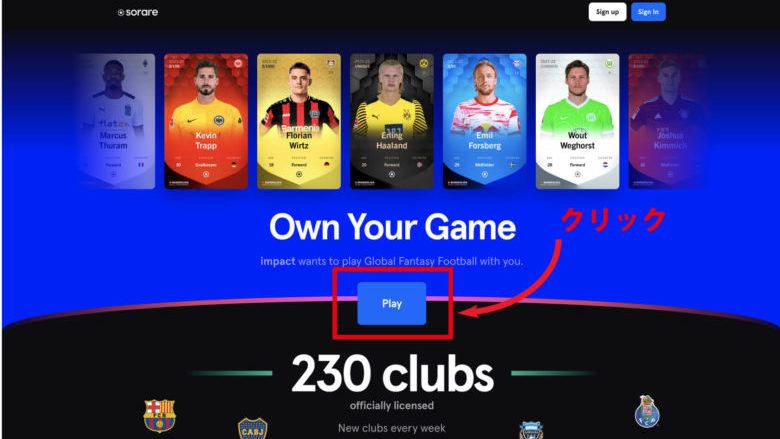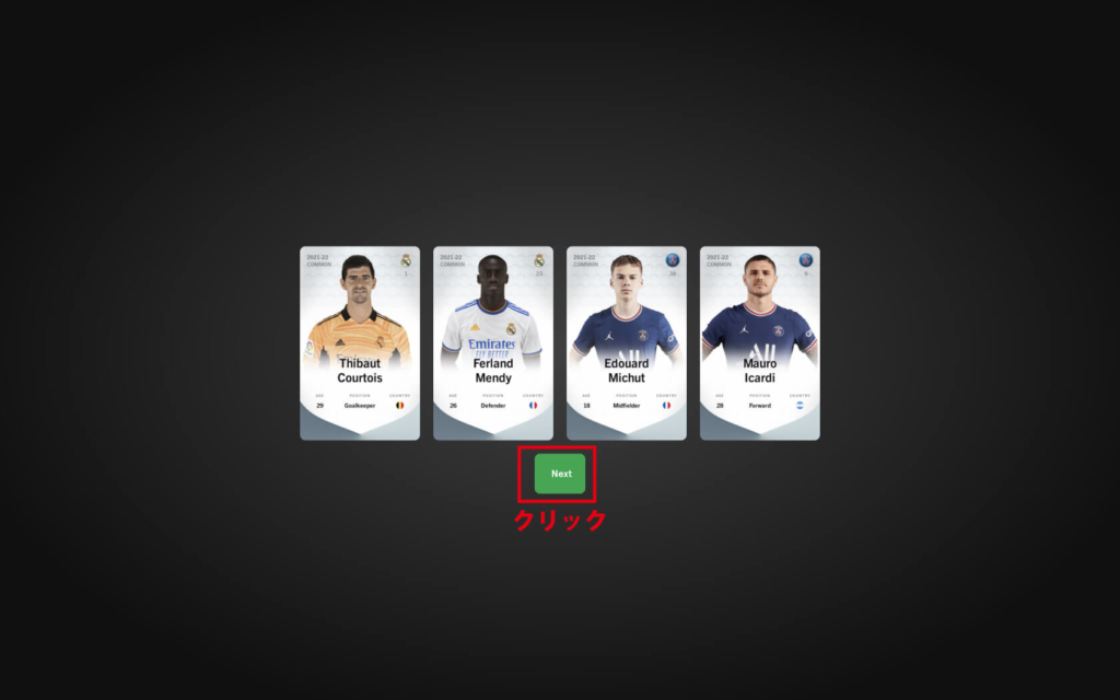 選手カードの購入方法については「Sorareで選手カードを購入する3つの方法をわかりやすく解説!」をご覧ください。