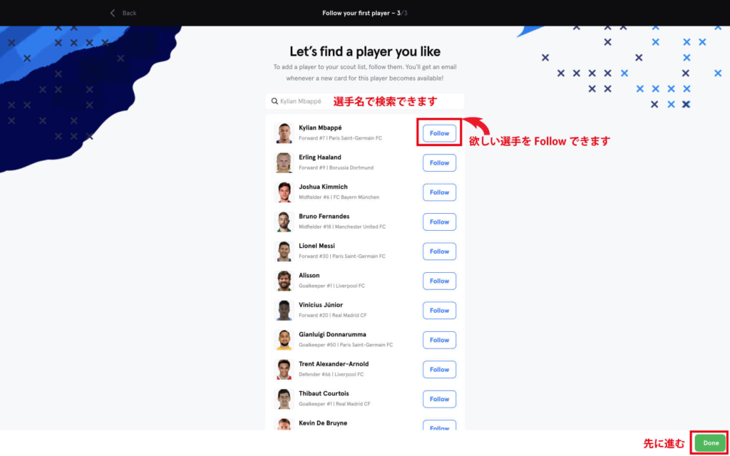 Followする事で選手カードが売りに出された際にお知らせが届きます。