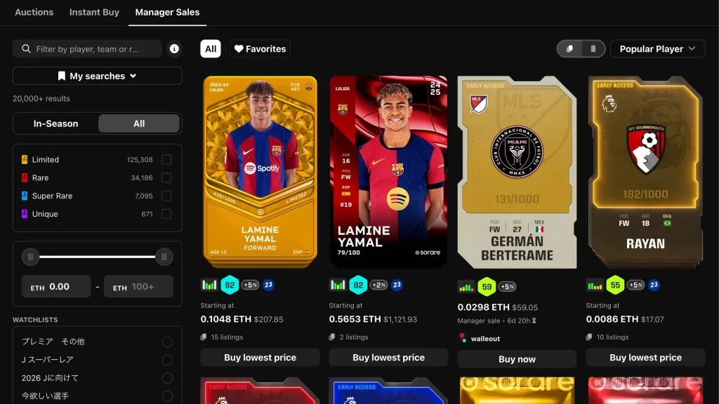 (引用:Sorare Help Center: Primary market – FAQ )