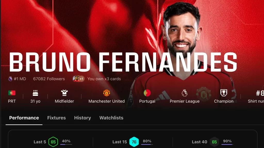 私のおすすめなのが、マンチェスターUのキャプテンでポルトガル代表MFのブルーノ・フェルナンデスです(以下フェルちゃん)