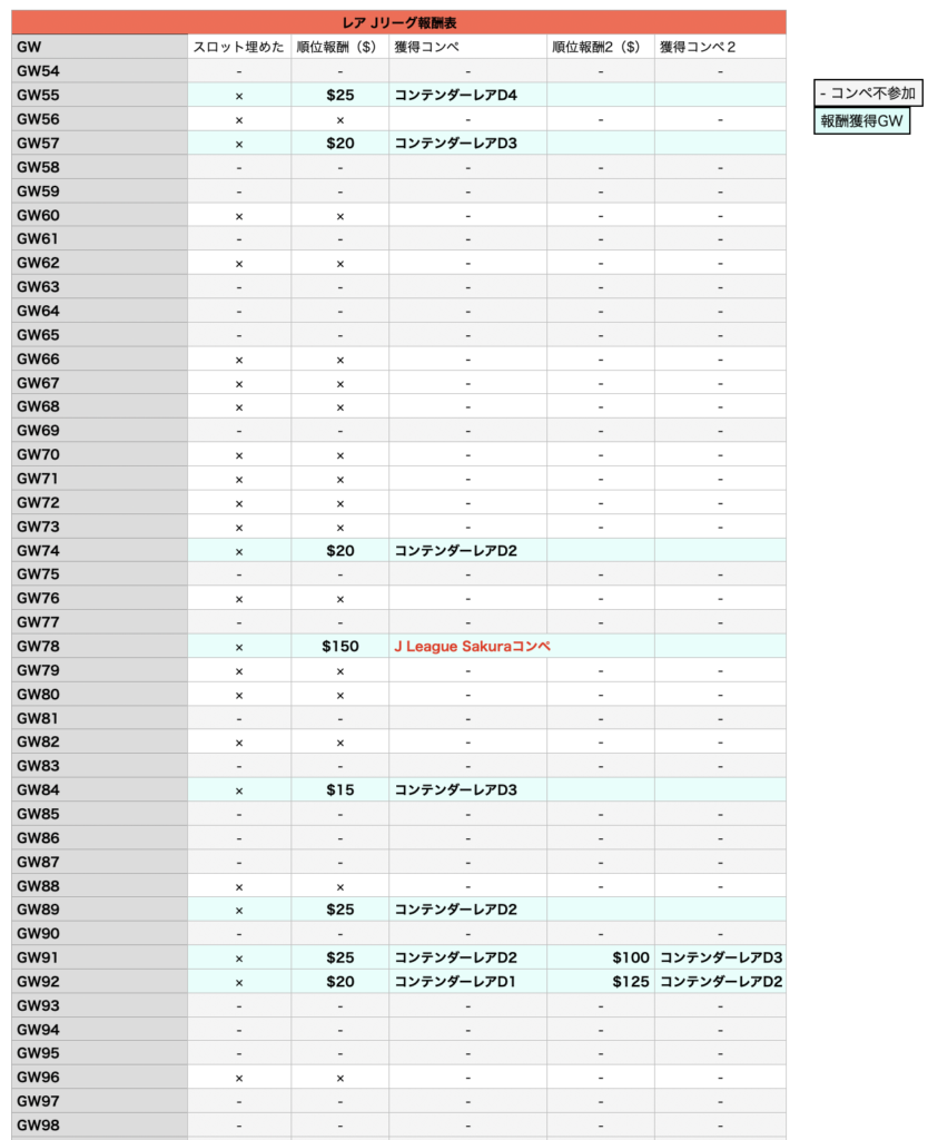 Rare J コンテンダー報酬表