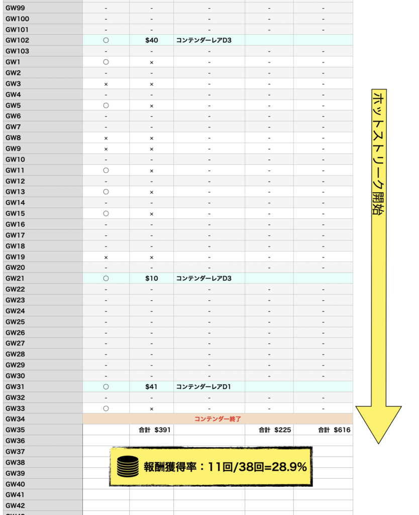 3連勝目くらいから閾値のクリアが難しくなってきます。