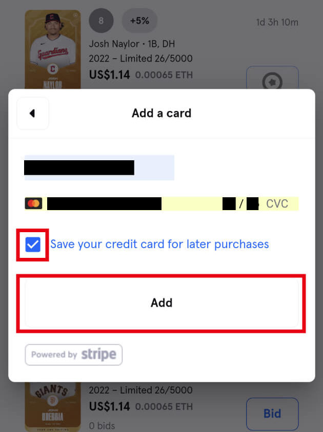 レジットカード情報を入力し、「Add」をタップします。
