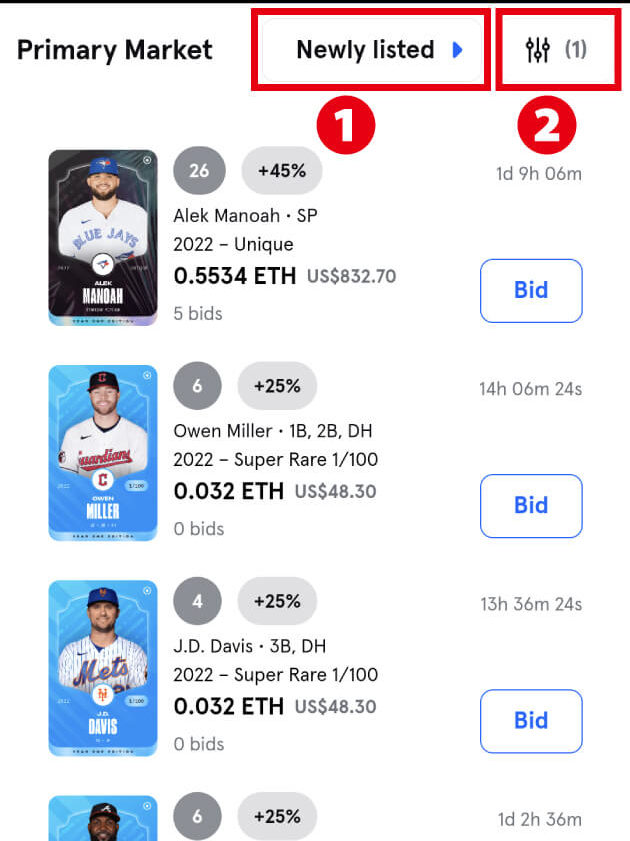 【Sorare MLB】選手カードを購入する2つの方法